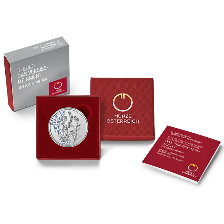 Eine wunderschöne Blume als wunderschönes Geschenk für einen wunderschönen Menschen. Lassen Sie das Vergissmeinnicht für sich sprechen. Überlassen Sie es ihm, Ihren größten Wunsch kundzutun: Denk an mich! – Die Münze, eine weitere Münze der Serie „Sprache der Blumen“, ist ein detailtreues Meisterwerk: Ein natürliches Vergissmeinnicht hat seinen Abdruck auf ihr hinterlassen.