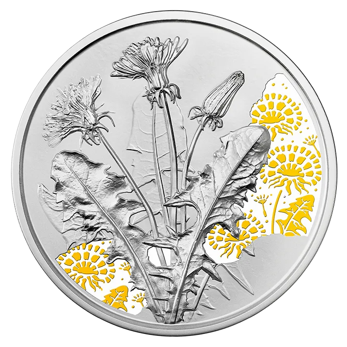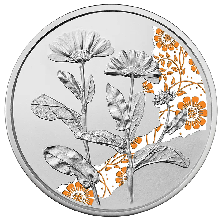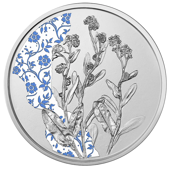 Auf den Münzbildern haben sich eine Rose, ein Löwenzahn, eine Ringelblume, ein Vergissmeinnicht, eine Kamille, eine Pfingstrose und ein Veilchen selbstverwirklicht. Dafür wurden Abdrücke echter Pflanzen verwendet, so gleichen sie ihren realen Vorbildern vollkommen. Die Blumen auf den Münzen sind für immer lebendig.