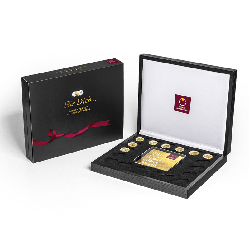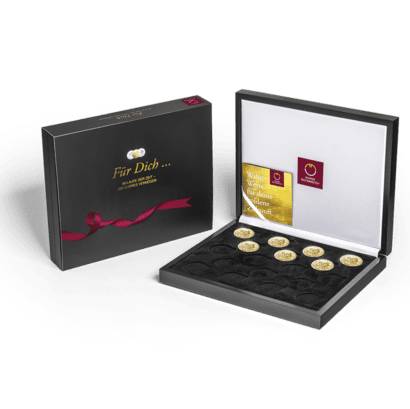• Hochwertige und elegante Kassette für 18 Stück Wiener Philharmoniker