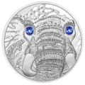 Die Silbermünze mit Kristallen gehört zur Serie „Augen der Kontinente“. Jedes Tier der Serie verkörpert eine andere fabelhafte Eigenschaft, so wirken die fünf Kraft-Münzen inspirierend auf den, dem sie gehören.