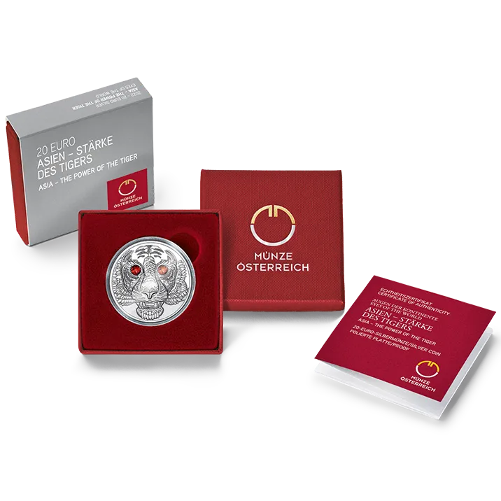 Die Tigermünze, die dritte Silbermünze der Serie „Augen der Kontinente“, ist zugleich Münze und Schmuckstück.