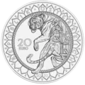 Die Wertseite stellt im Zentrum einen Tiger in Bewegung dar. Neben ihm ist ein Bambuswäldchen angedeutet. Das Motiv wird umrundet von einem Ornament, das an Mandalas erinnert, an Schaubilder, denen in der Kultpraxis des Hinduismus und Buddhismus eine magische Bedeutung zukam.