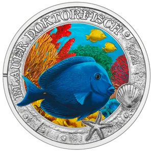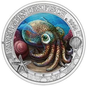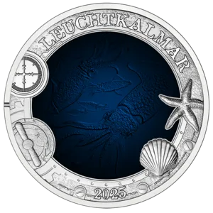 Zusammen mit den anderen Münzen der Serie „Leuchtende Meereswelten“ möchte sie die Schönheit und Lebendigkeit der Unterwasserwelt eindringlich vor Augen führen. Damit der Lebensraum Meer so vielfältig bleibt wie auf unseren bunten Münzen, müssen wir ihn unbedingt beschützen – vor uns selbst.