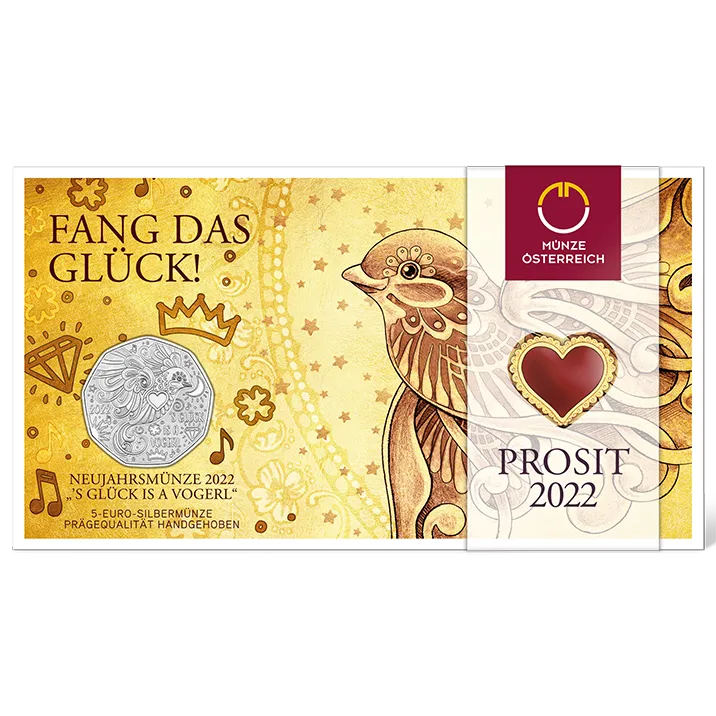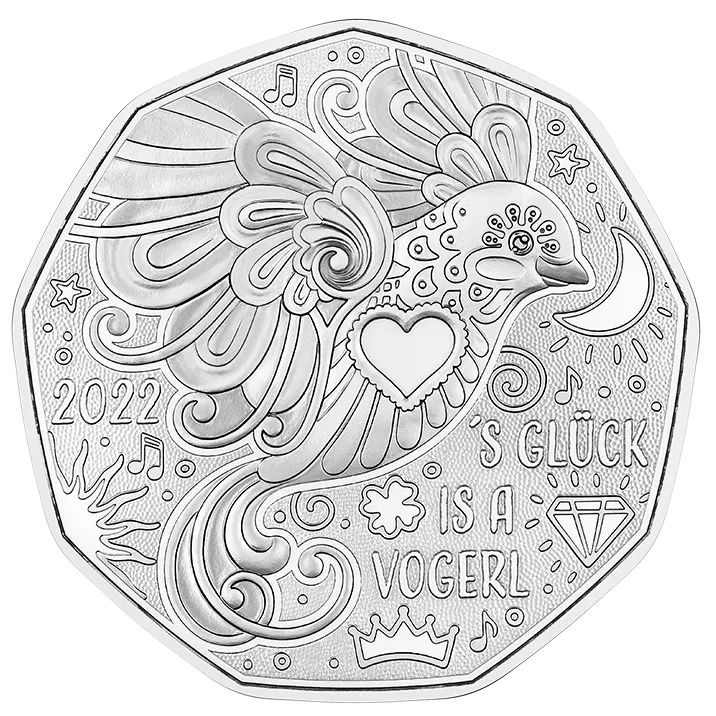 Eine vergnügliche Münze zum Jahreswechsel, mit einer lebensklugen Botschaft. – Die Talisman-Münze, eine Silbermünze oder Kupfermünze, möge bewirken, dass dir im kommenden Jahr das Glück nur so zufliegt. Die Vogerlmünze, eine 5 Euro Münze, ist ein perfekter Glücksbringer.