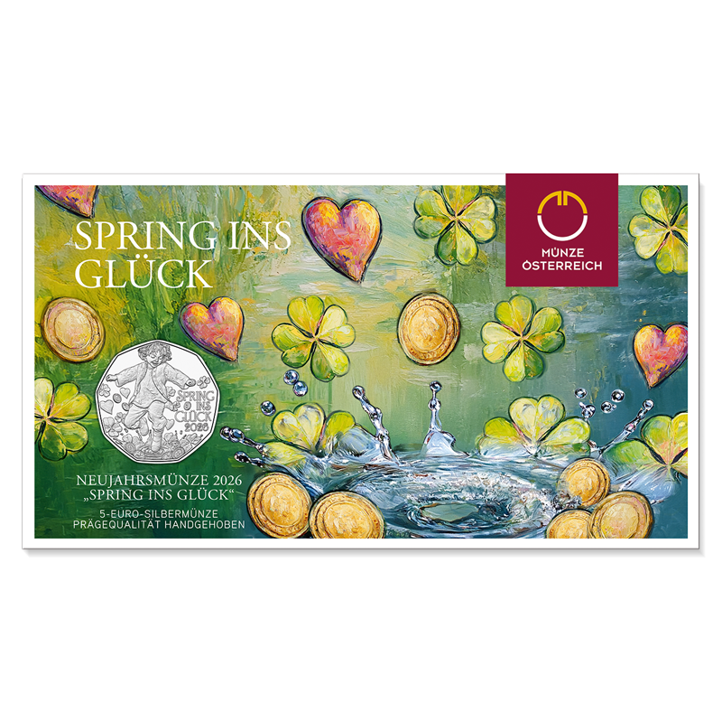 Auf der Münze hüpft ein Kind mit Genuss in eine Lacke. Es erlernt und probt spielerisch, worauf es sich im besten Fall später als Erwachsener verstehen wird: Mit Freude ans Werk gehen, raus aus der Komfortzone, rein ins Abenteuer! Unsere hochwertig geprägte, neuneckige 5-Euro-Neujahrsmünze aus Silber ist in ihrer fröhlich gestalteten Geschenkverpackung ein kleines Kunstwerk mit großer Botschaft: Wer mit Zuversicht und Schwung ins neue Jahr springt, darf sich auf schöne Überraschungen freuen. Ein Sprung ins Glück braucht oft nicht viel – nur ein wenig Mut. Das Beste ist vielleicht nur einen Sprung weit entfernt. Wagen Sie’s!