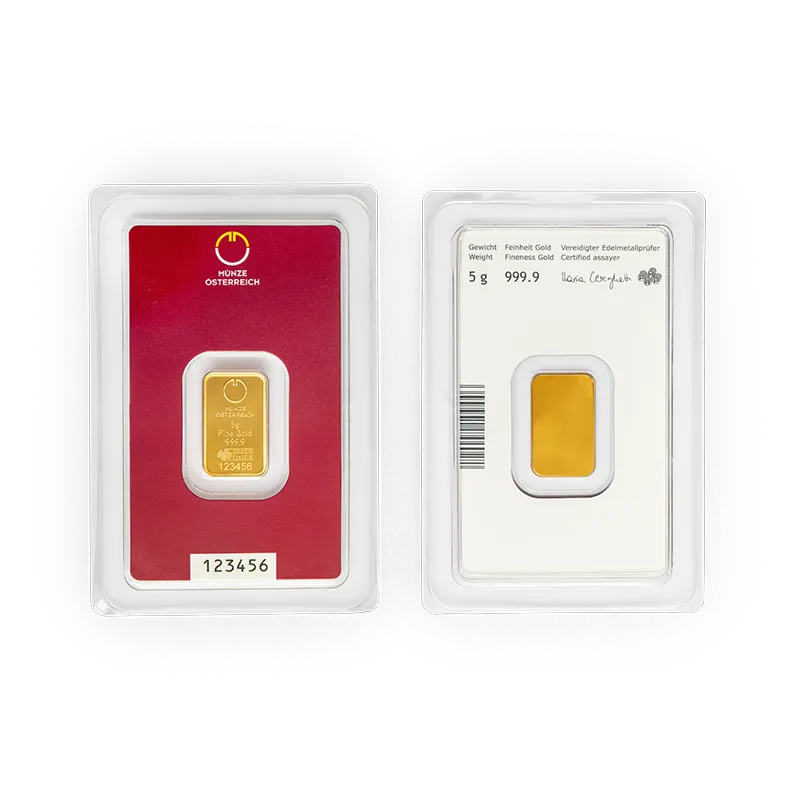 5-g-Goldbarren im Design der Münze Österreich AG – LBMA-zertifizierte Qualität