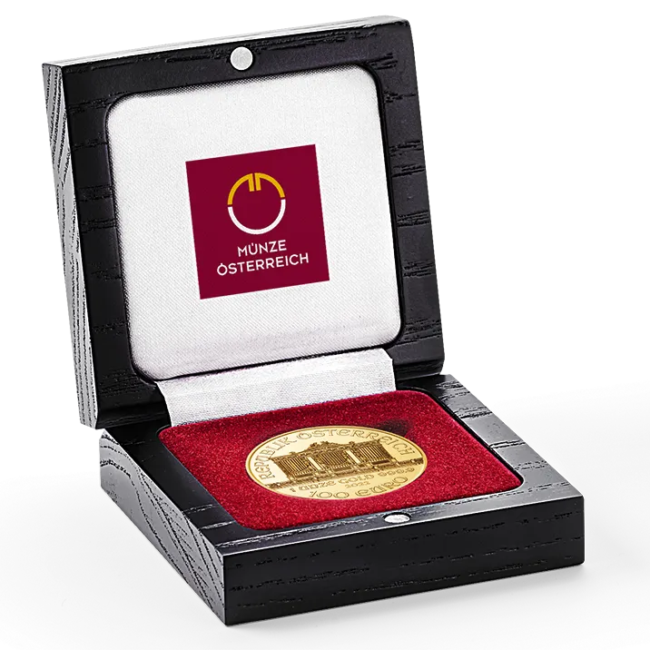 Gut verwahrt für die Zukunft: Das passende Etui für Ihre Anlagemünzen zu 1 Unze Wiener Philharmoniker in Gold, Silber oder Platin. Ebenso gut geeignet für die 100 Kronen Prägung. Perfekt zur Aufbewahrung Ihres Schatzes oder zum Verschenken.