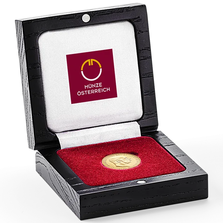 Gut verwahrt für die Zukunft: Das passende Etui für Ihre Anlagemünzen aus Gold. Die Box passt für den Einfach Dukaten, das 4 Gulden Stück und eine 10 Kronen Goldmünze. Perfekt zur Aufbewahrung Ihres Schatzes oder zum Verschenken.