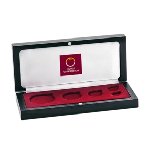 Kaum zu glauben, aber unsere Verpackungen machen Münzgeschenke noch schöner und einfacher. Die maßgeschneiderten individuellen Hüllen gibt es für alle Münzen im roten Etui und viele Gelegenheiten. Sie passen wie angegossen über die Etuis in ihrem Schuber und bieten auch Platz für eine persönliche Widmung.