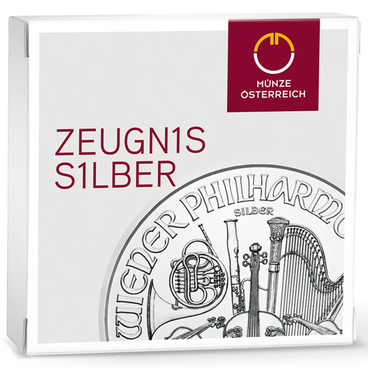 Die Geschenkverpackung "Zeugnis-Silber" eignet sich nur für Münzen im Etui wie z.B. Sammlermünzen in der Qualität Polierte Platte, oder Gold- und Silbermünzen in der Variante im Etui. Sie können bei allen geeigneten Münzen die Geschenkverpackung auch direkt im Warenkorb auswählen.